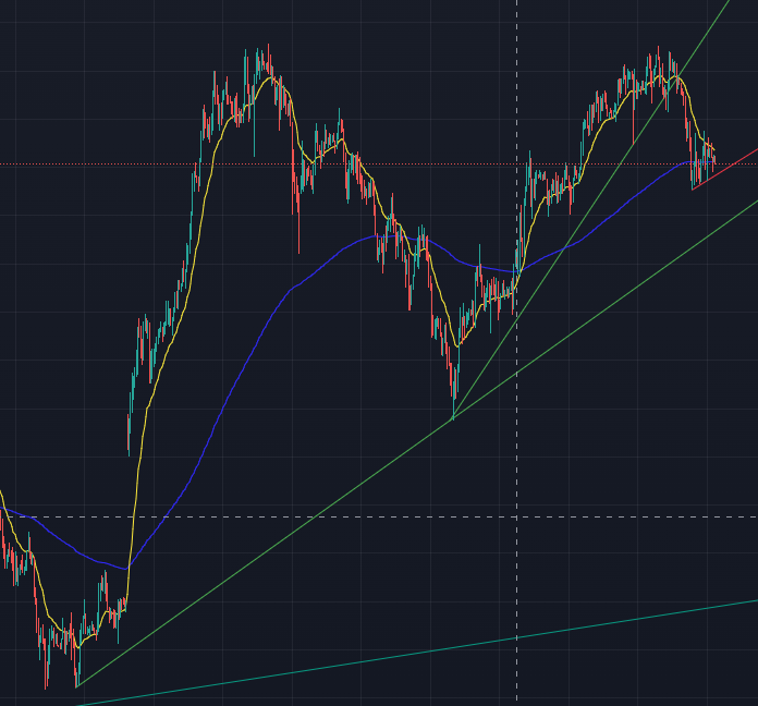 GOLDもエリオット波動3波が終わりかなぁ、、、この二つはよく逆の動きするからBUYで入るといいかもなぁ。。。。ハッキリと上抜けたら、いってみるか。。。。もう少し様子見。