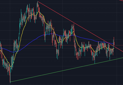 EUR/CHF 4時間足 の三角持ち合いを上抜けだ。。。。リバがしっかりしているようならBUYで入るか。。。。